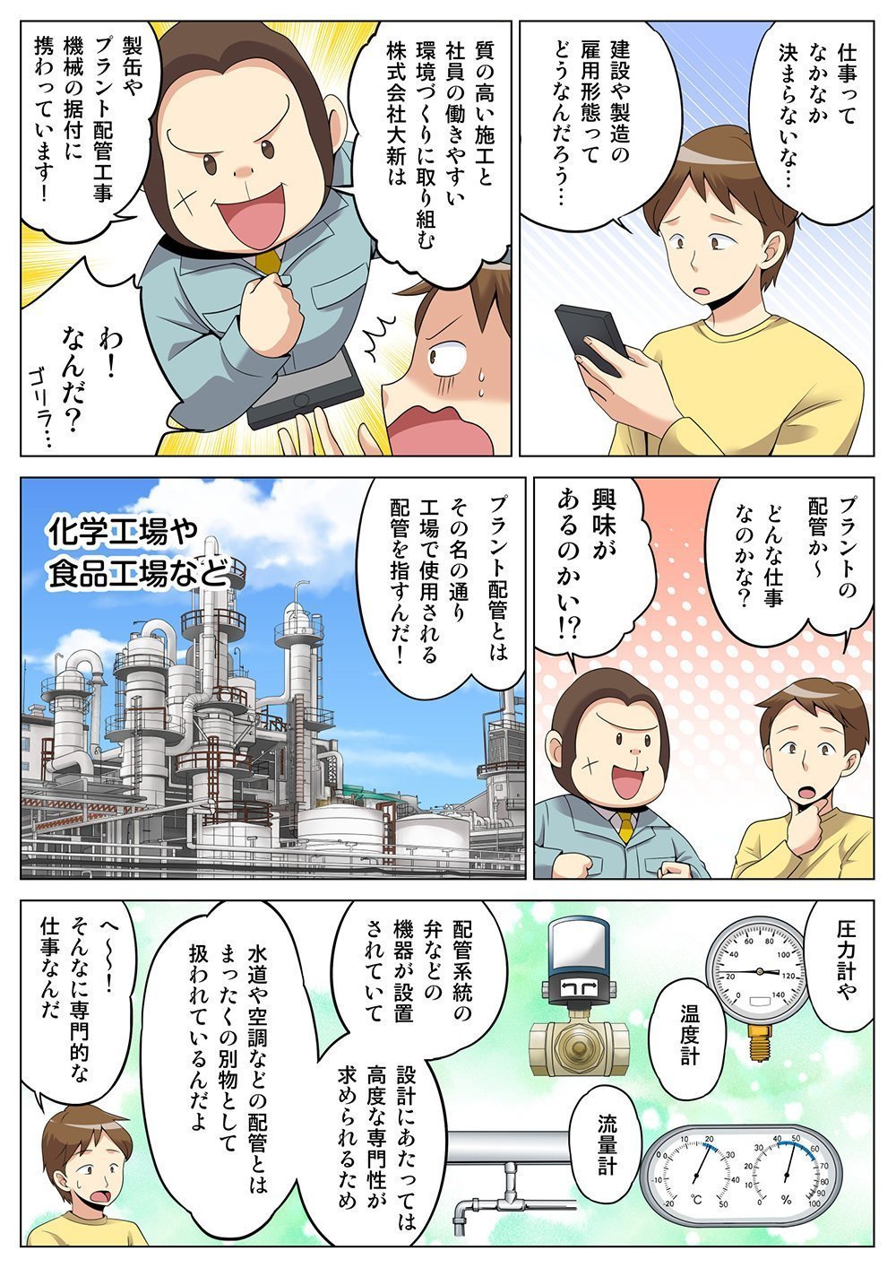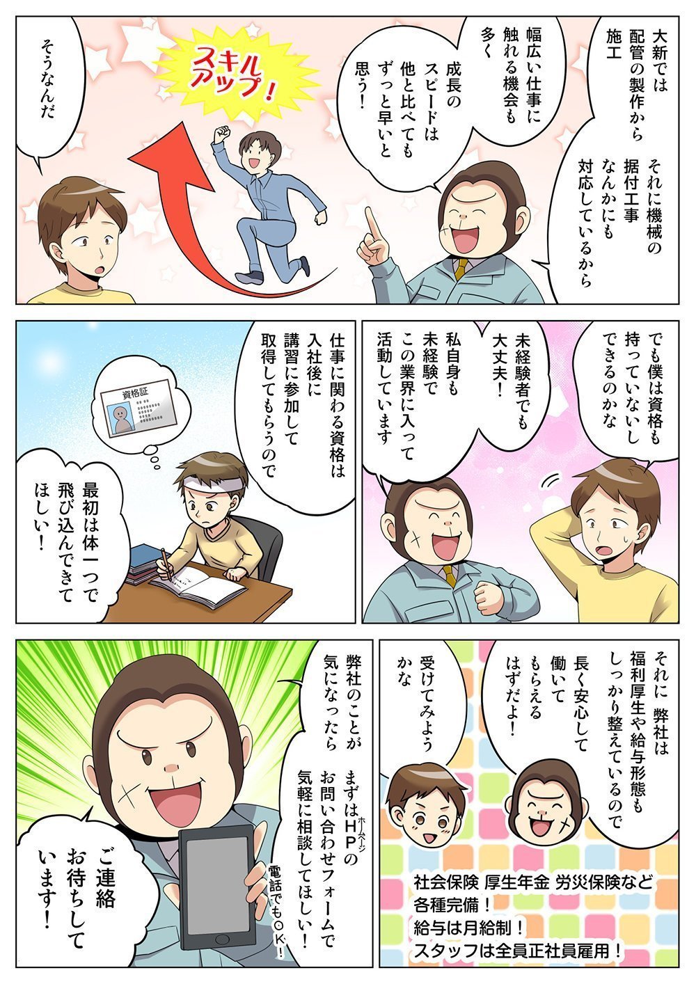 配管・製缶・溶接工事は経験者しかできないと思われがちですが、弊社では未経験者も歓迎しています。工事内容に興味があれば、ぜひご応募ください。経験豊富な先輩たちが一人前になるまでしっかりサポートします。